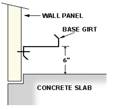 The Base Girt option requires a notched concrete slab or notched pier slab. The Base Girt Option is primarily used for buildings that will have gravel floors or floors that will not be a full concrete slab.