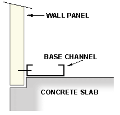 The Base Channel option requires a notched concrete slab. Base Channel works for buildings that will be equipped with interior liner panels.